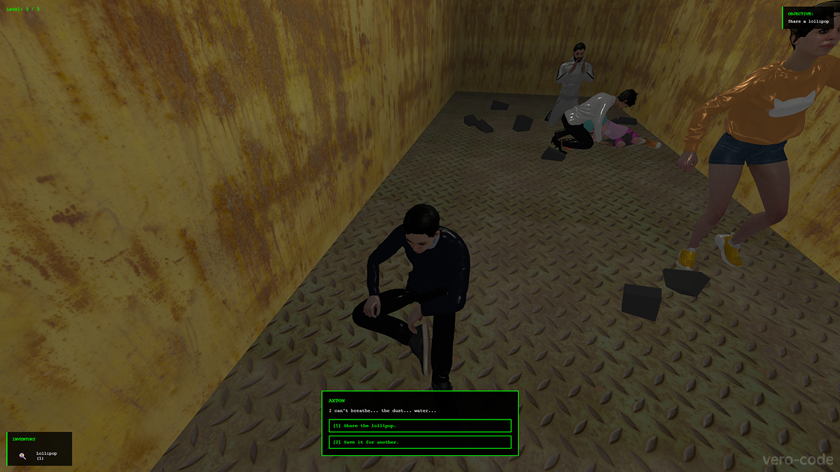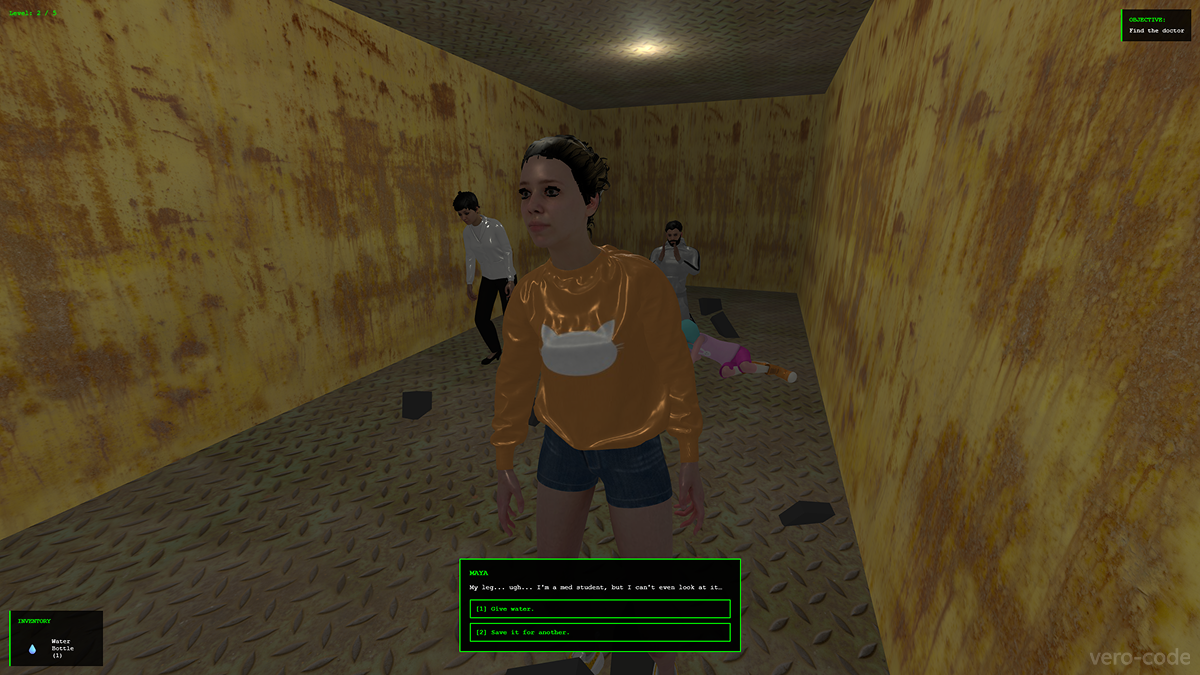 - Meaningful Choices: You will find scarce resources like water. Who needs it most? The injured? The child? Or should you save it for yourself?